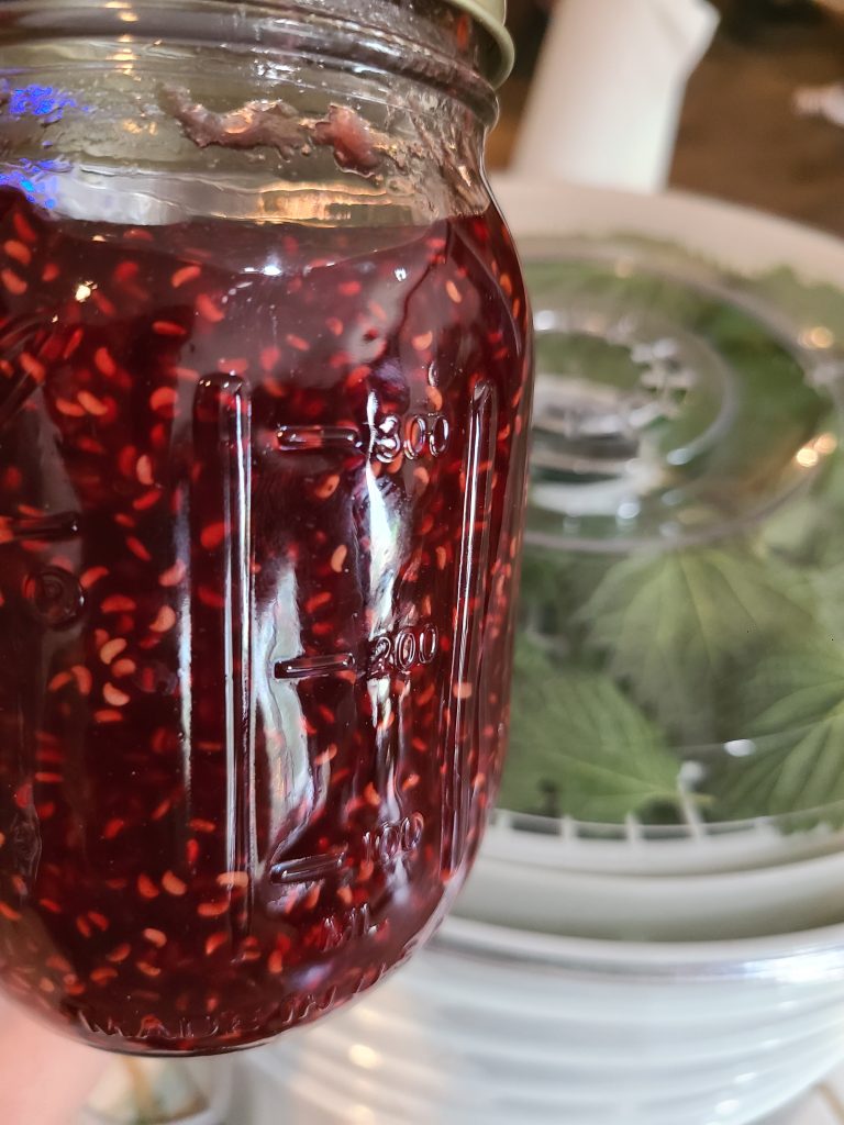 I’ve been busy using up last years harvest that we have preserved. I’ve made a few jars of raspberry preserves; I only used sugar, berries & lemon – it taste amazing!! I’ve still got a bunch of raspberries, and strawberries to use up. I’m also working on using the herbs I have stored in the freezer(chives, green onions, mint, lemon balm).