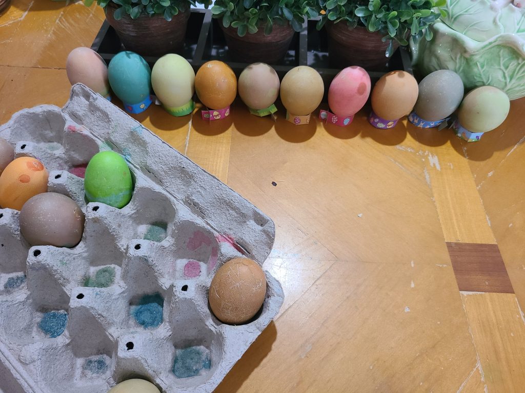 Although our farm fresh eggs won’t have bright colors, because we don’t have any white egg layers. Knowing they came straight from our farm is 100% better!