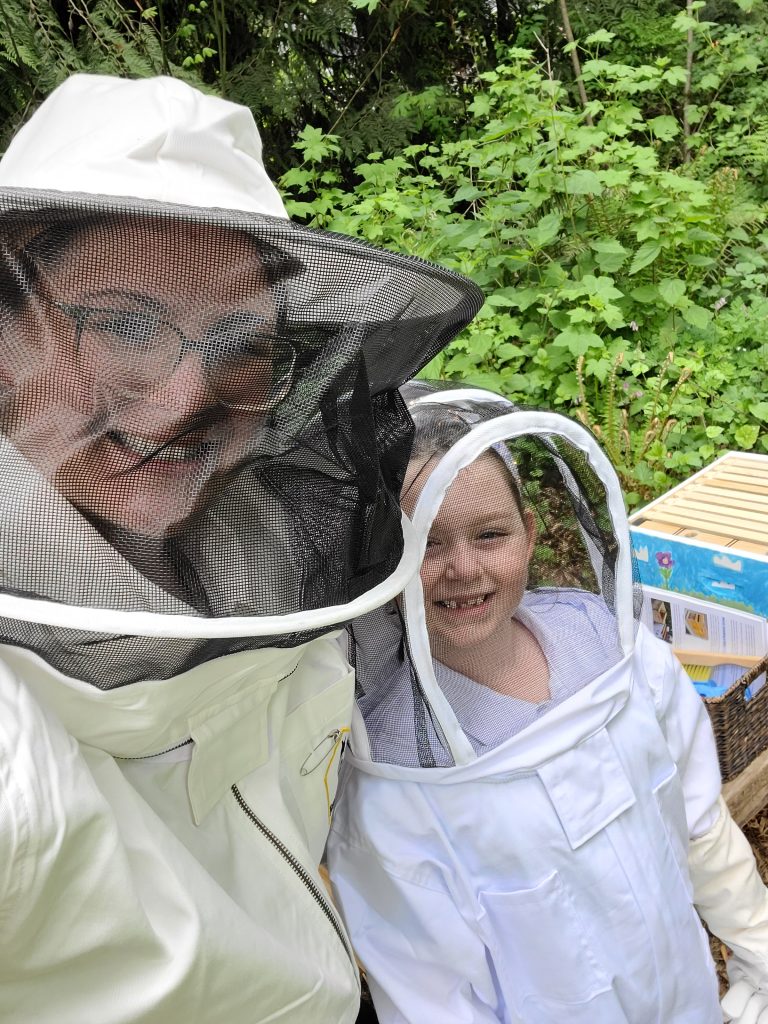 My 7 year old is a natural beekeeper and I can’t believe how calm & comfortable she is with the bees. She amazes me!