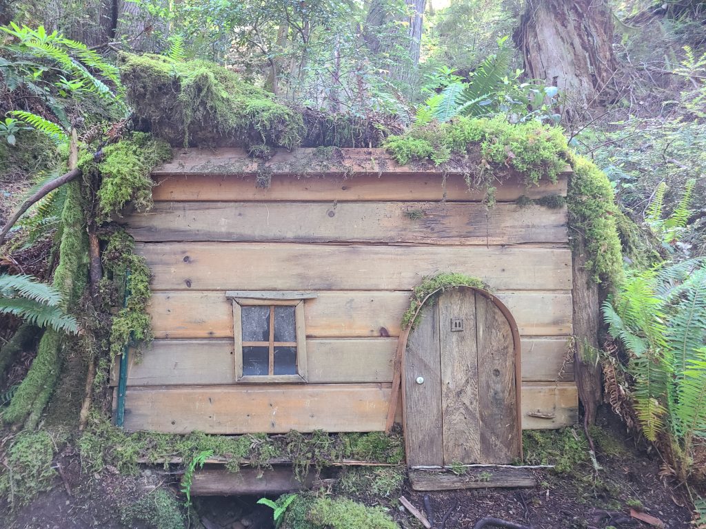We recently did this hike, and the kids had a great time spotting all the fun things on the trail. We saw a face in a tree, fairy house, a “hobbit house” built into the side of the hill, a creek, and of course the 30 foot Douglas Fir. Half-way thru the trail is a nice picnic shelter that would be perfect for a picnic.