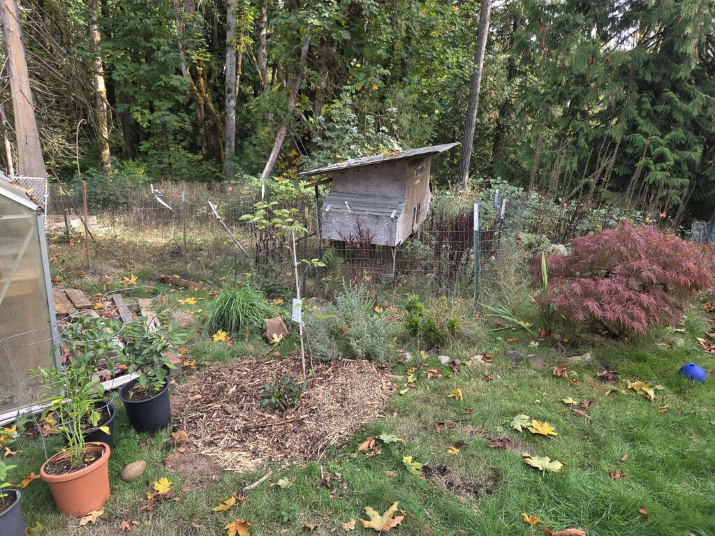 My food forest has been a fun project; the previous owners did plant most of the fruit trees, grapes, and some berries. I’ve been working on turning it into a food forest the past four years. My main goal is to grow lots of perennials here, and so far I’ve got;